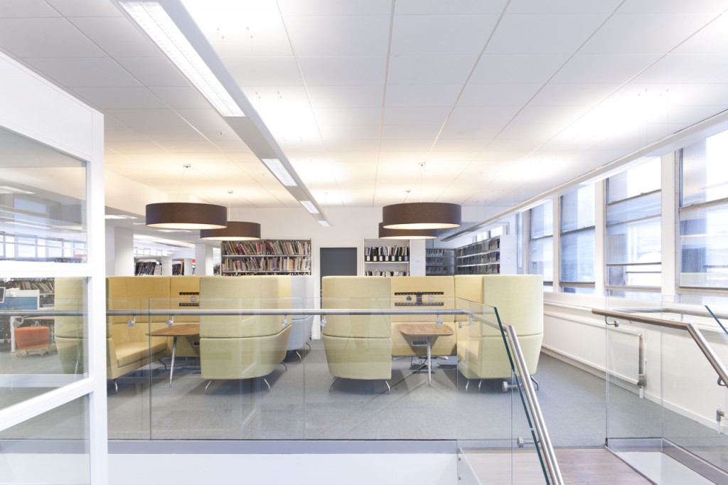 Leading from the 1st floor is a brand new glass and steel staircase with integral lift to the 2nd floor. This is where we have created media pods, technology desks, a number of group study zones, a beautiful oak table, materials collection, a seminar room and a quiet study room.