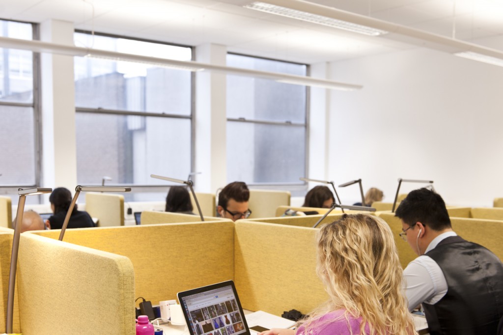 This area has been extensively opened up to create more space and light, but without the call-centre feeling often associated with open plan spaces, we used the new book stacks to create these zones and help with keeping the noise levels down.