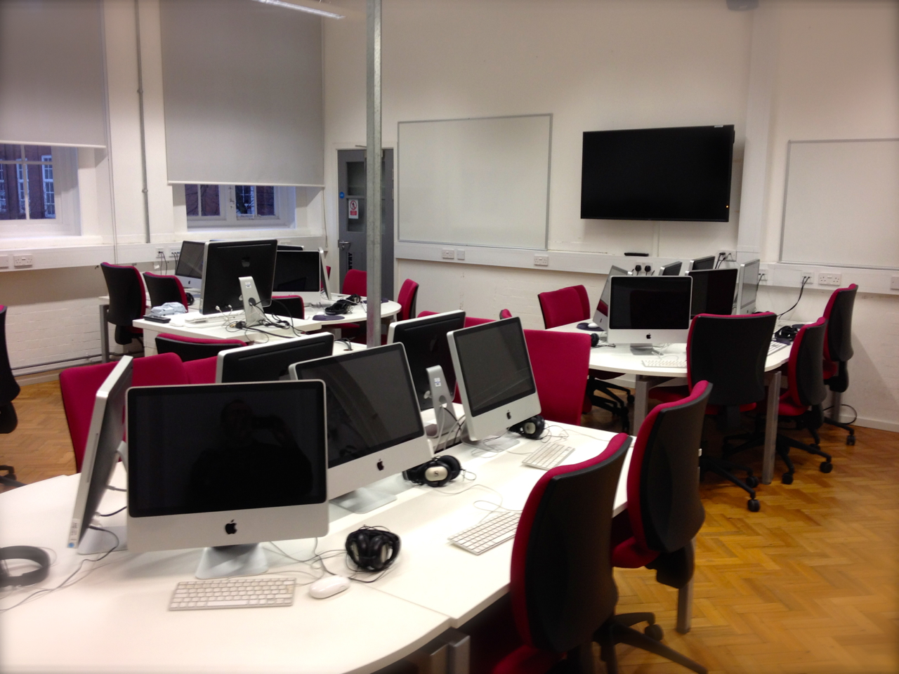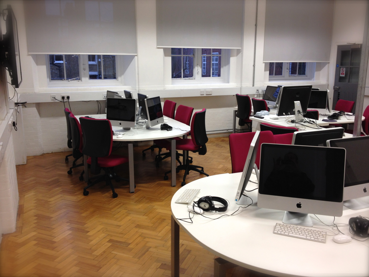 This plan view is of room C103 which is intended to be a ‘Newsroom’ for BA Fashion Journalism students. Groups of up to five will be working on fashion production, features, broadcast and print, albeit in a converged environment using iMacs for their respective areas of study.