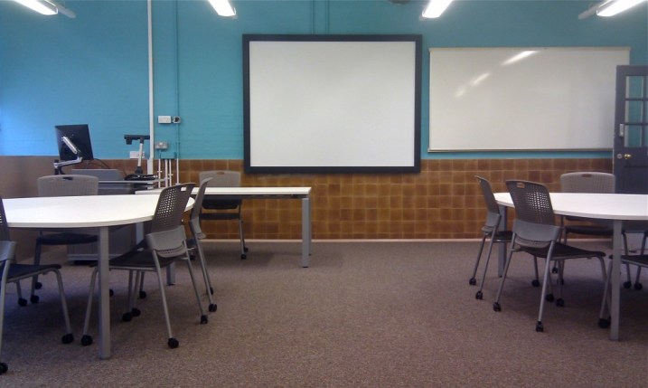 This seminar room needed a total refurbishment along with new audio visual technology to accommodate 25 students. Agreement was sought that the space would not be timetabled by courses needing a messy art based facility, rather a seminar space for group based learning activities.