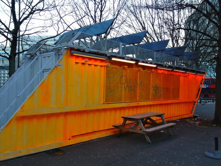 This feature right outside the entrance to LCC is a colourful storage container complete with PV solar panels.