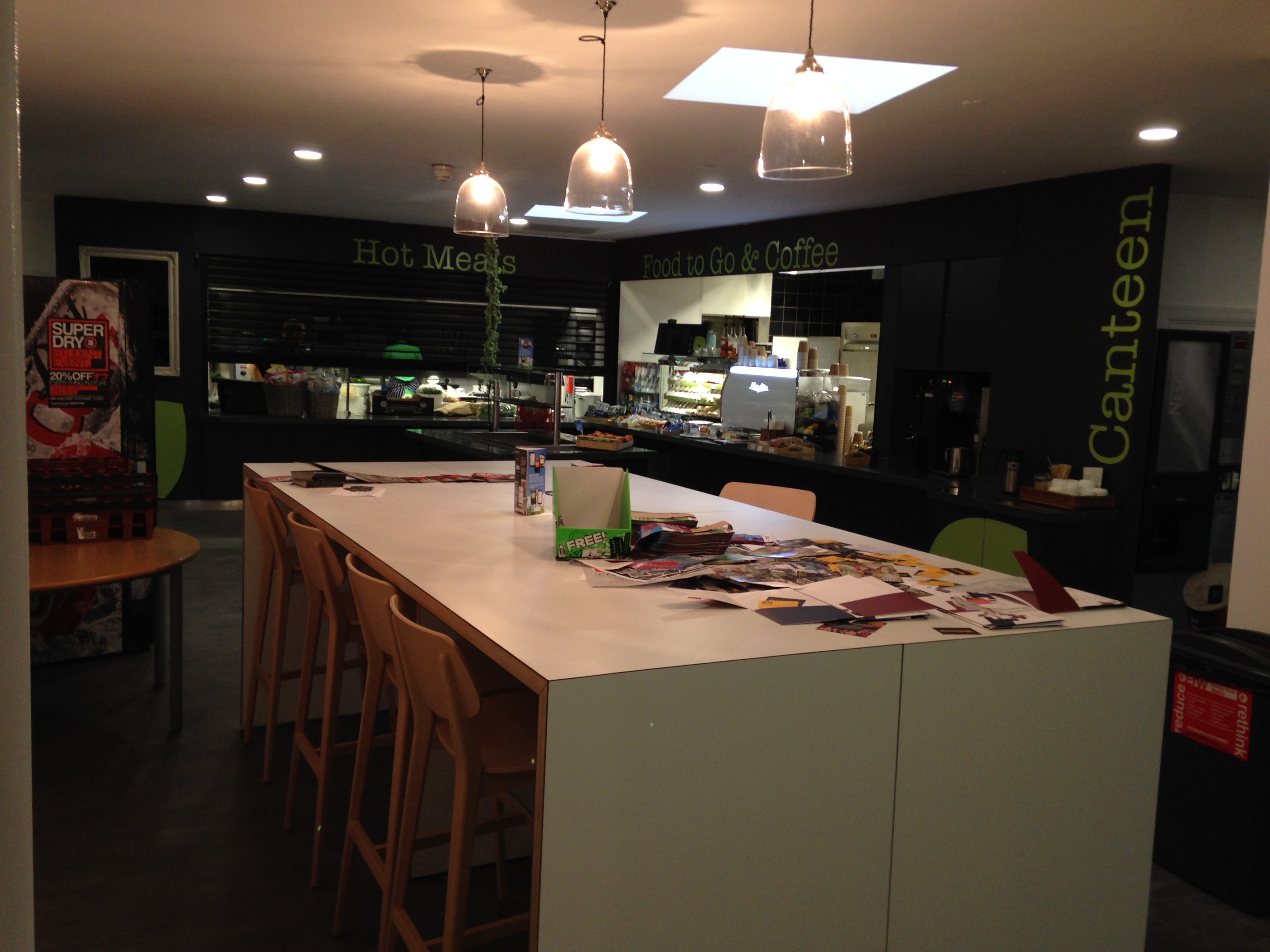 In the spring of 2014 I redesigned the canteen at JPS, the last of six social spaces to be redeveloped as part of the college’s strategic plan. Working closely with Sarah Bailey, who runs the BA Visual Merchandising course, we created a Scandinavian kitchen style of furniture, lighting, colour and finishes. The last pieces of furniture were installed after I left the University at the beginning of the autumn term.