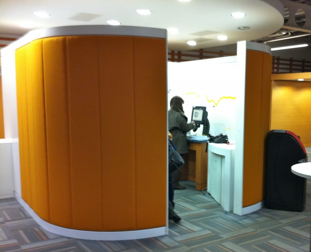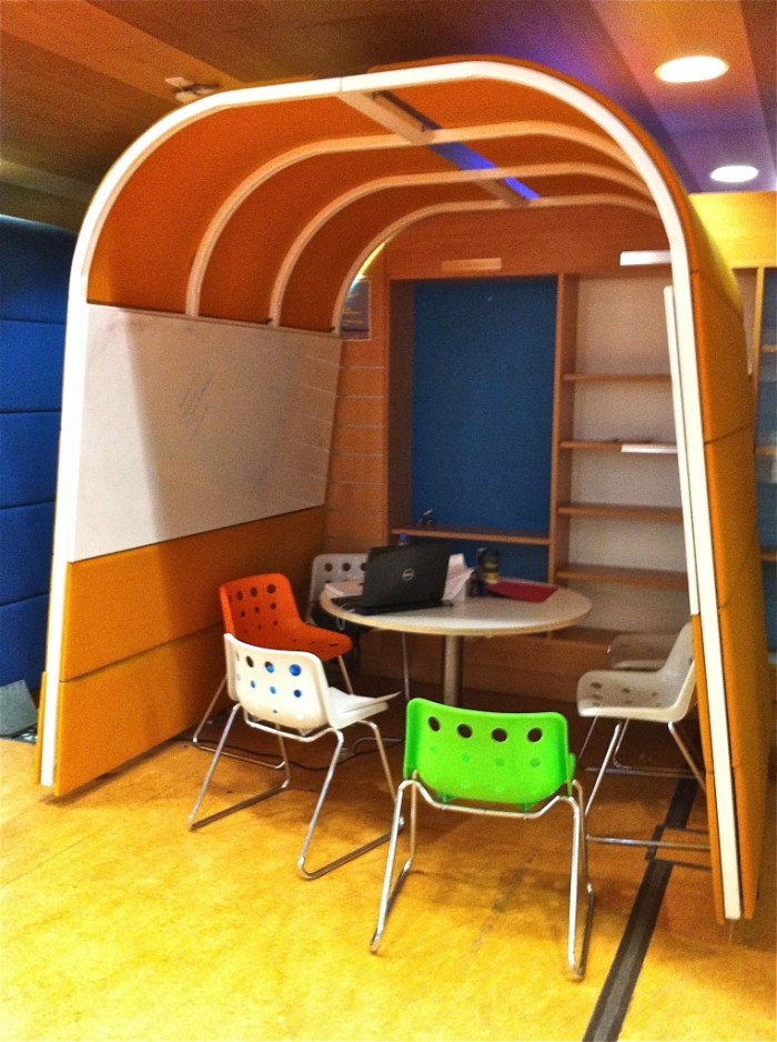 They took the library shelves down and created individual carrels together with group study pods with beanbags and large screens. The students like them and don’t have a problem with the public area, as a whole building is public and open plan so that the students don’t know anything different.