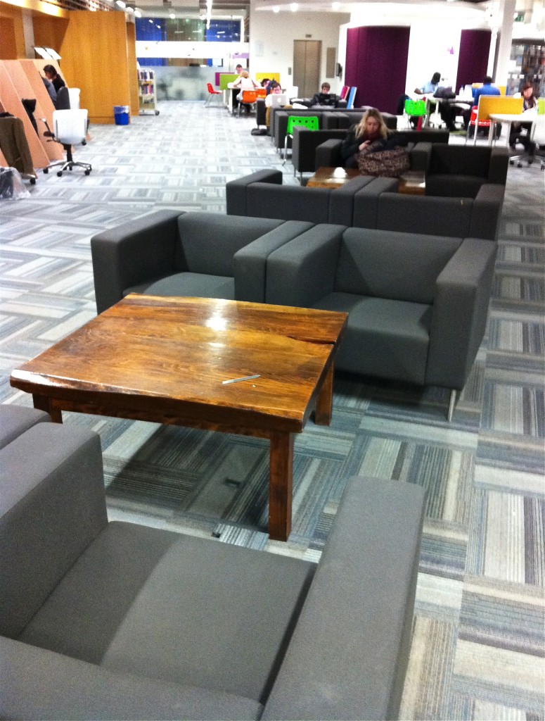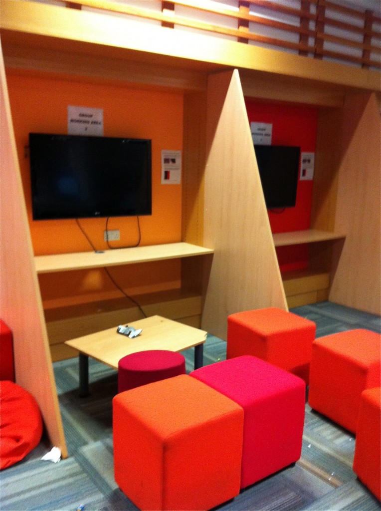 They are planning new zones on the lower ground floor with free standing tables and chairs with central soft seating areas followed by more study pods for group work. They will have fixed tables to power in the floor.