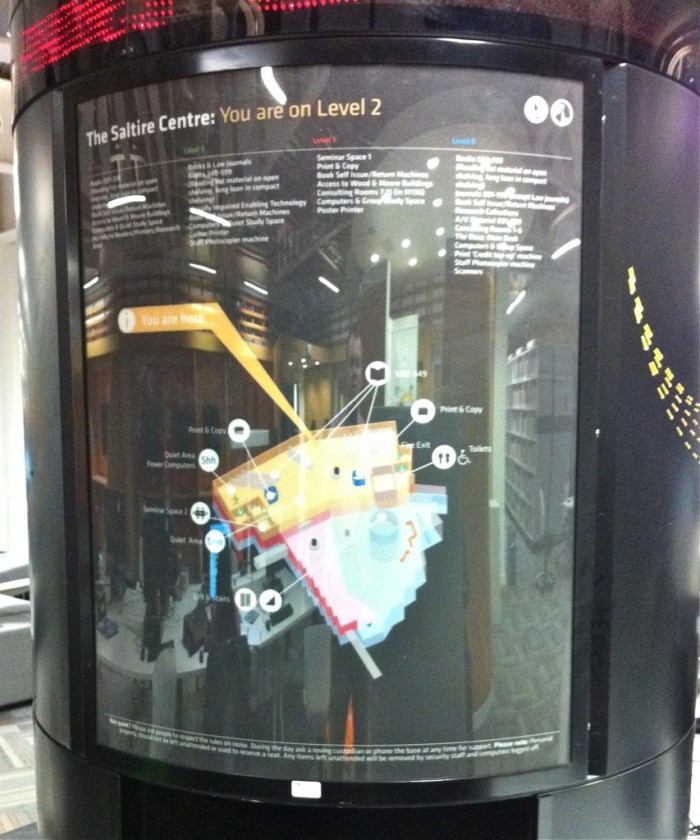 There are well designed way finding columns but I wonder how often they are used. Sonya mentioned that on opening there was no way finding signage so the students were somewhat dropped in the deep end.
