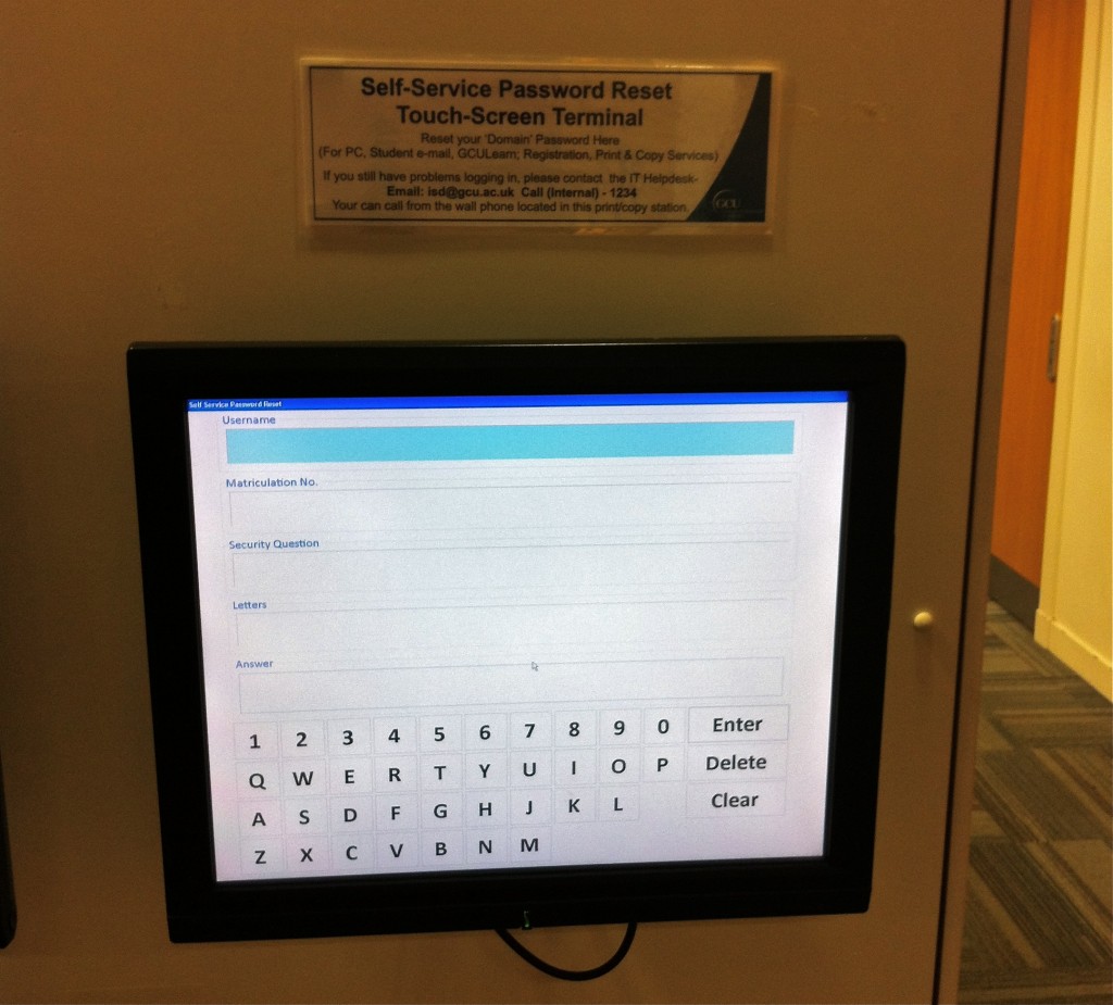 I noticed there were touch screen consoles for students dotted around, they were to reset their password and resolve login issues, complete with instructions in text above each screen, these were very impressive.