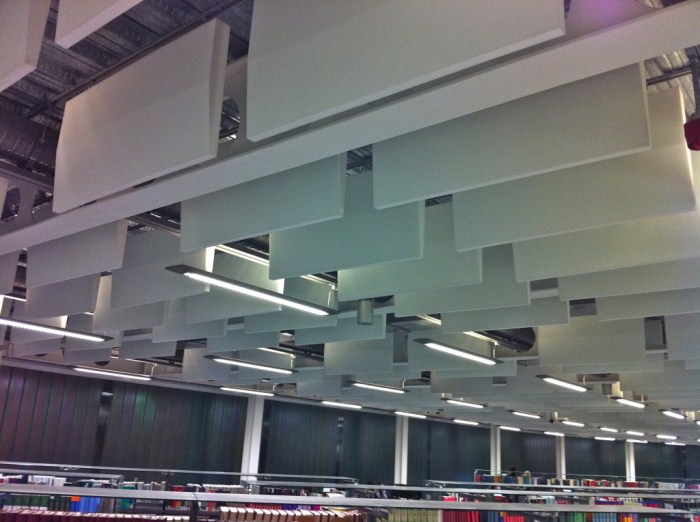 Architecturally, I saw that there large ceiling spot lights and reflectors, along with sound baffles to help with acoustics mounted in the ceiling voids.