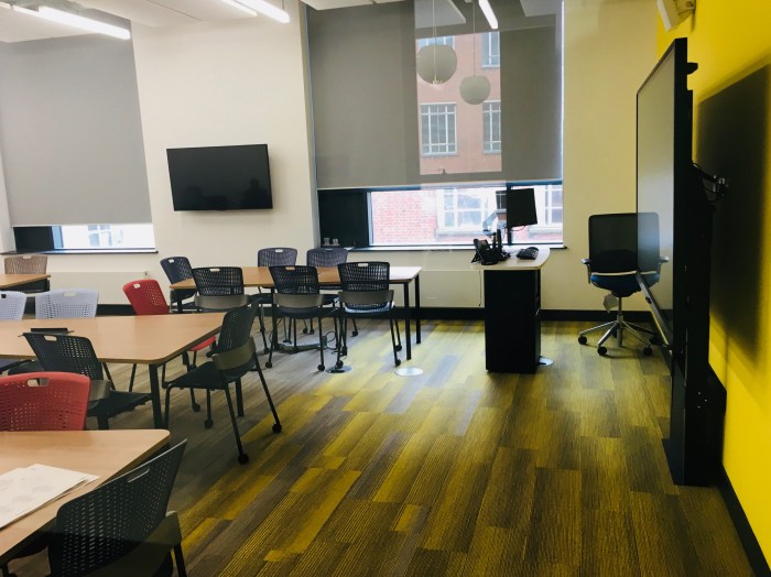 In the spring of 2019 a small team from City visited Mark Bardouille, my old colleague from London College of Fashion. Mark kindly gave us a tour of some of the new learning spaces at London Met. including active learning seminar rooms, social and informal study spaces.