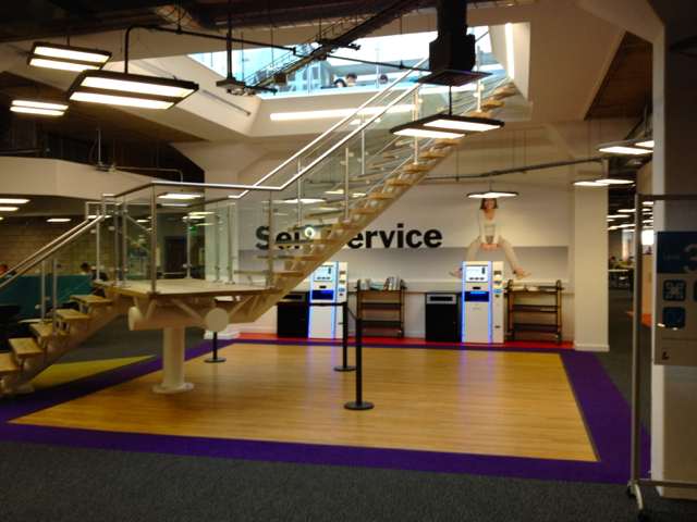 This is the new helpdesk which is to the side as opposed to the dominant location where the staircase now sits