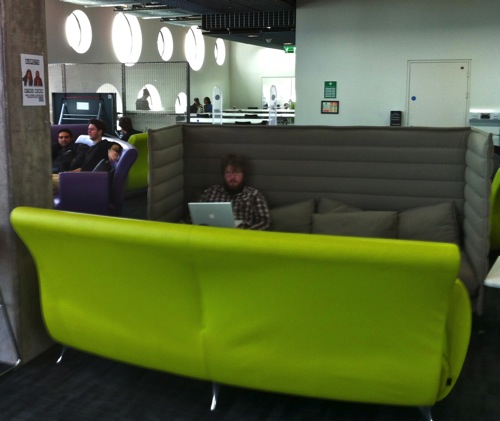 Student informal study space, like many areas, it has screens on castors to create some ‘privacy’ , lockers for each student, even a few table football games.