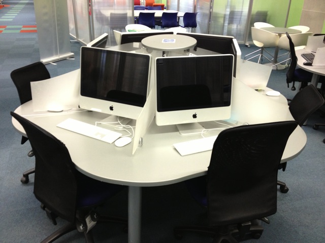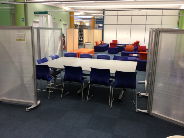 In fact the challenge was in creating a silent study area in an open plan space. Hence the traffic light colour scheme to signify the type of activity for students.