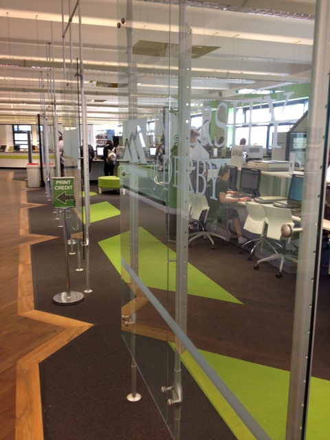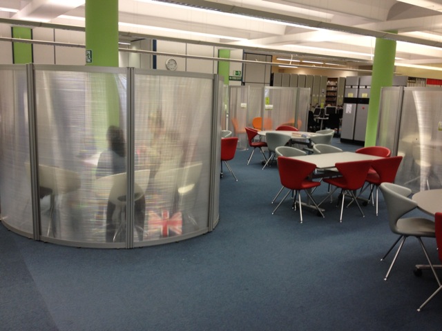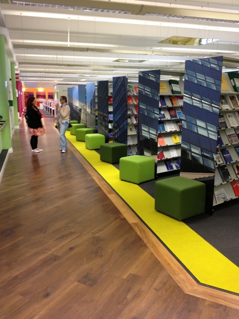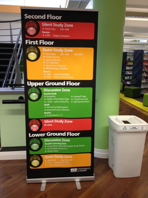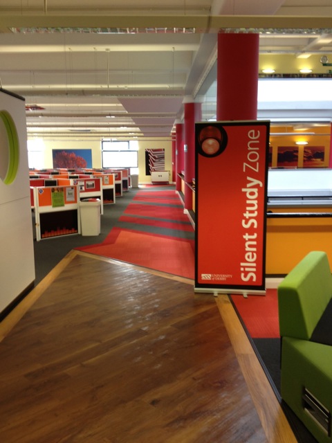 The University library has recently been redeveloped on the ground and lower floors with a traffic light system of guidance for students.