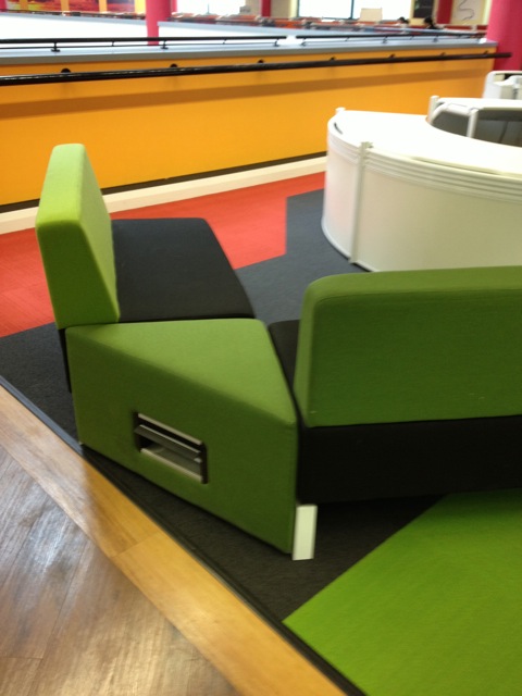 I questioned the use of so much red as it arguably signifies a short stay for people, perhaps some evaluation would be interesting to see if students have any views on such a vivid colours scheme in what is probably a long stay area. I did wonder if the design of the carrels was actually quite useful as once sat in the desk your eyeline is narrowed down to the screen in front.
