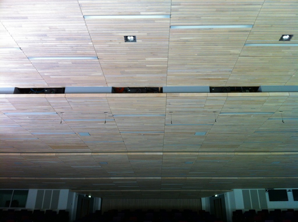 The space has 3 data projectors, cleverly installed into the stunning wooden ceiling