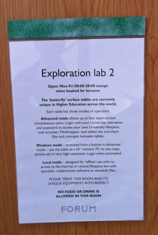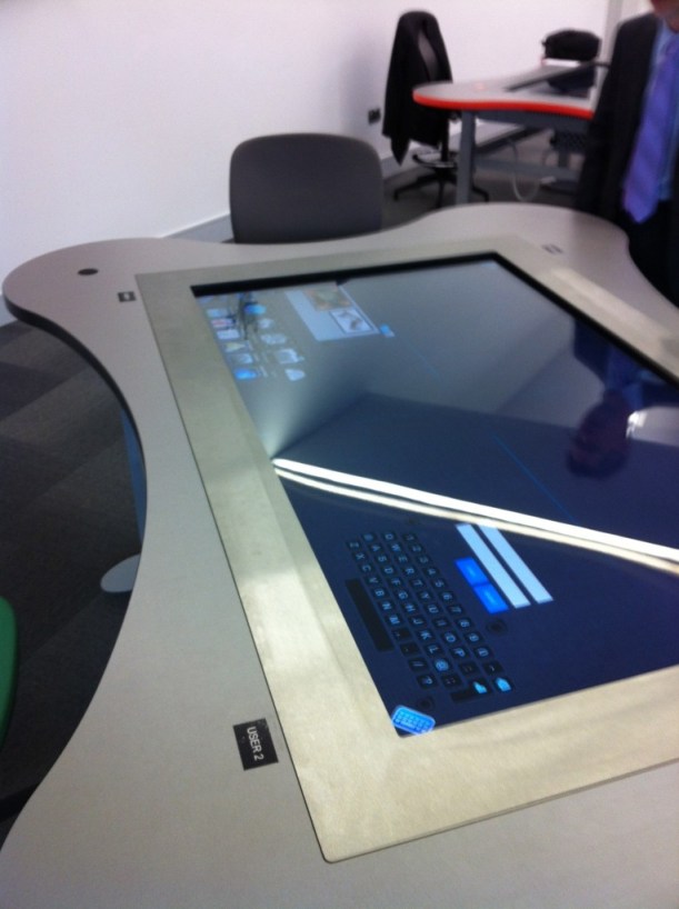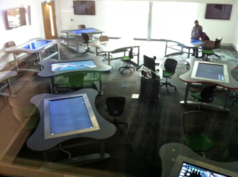 These collaborative tables allow 4 users to interact with the software and each other, sharing files across a desktop that extends to four virtual computers. Each table can interact with others in the room and for other users, there are wall mounted screens to see what it happening. A fascinating concept that with expert guidance and explanation, I am sure students will be excited to explore the relevance and effectiveness of this technology.