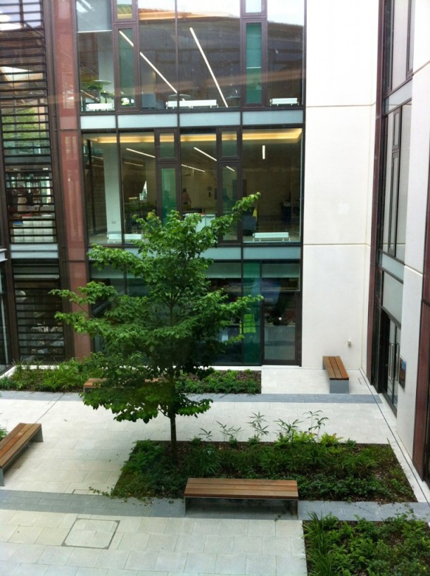Inside The Forum I found this courtyard, no one seemed to be making use of this interior green space, perhaps it feels too public and exposed for comfort?