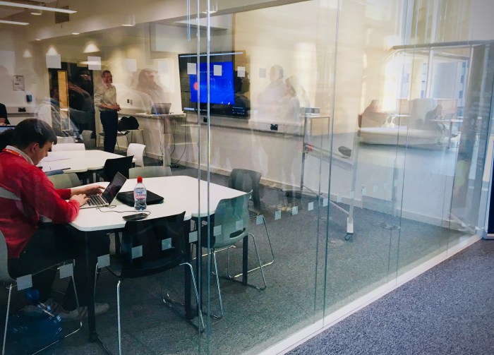 Despite the wireless solution, we did a number of teaching through the many glazed walls where academics were connecting their University laptops via HDMI.