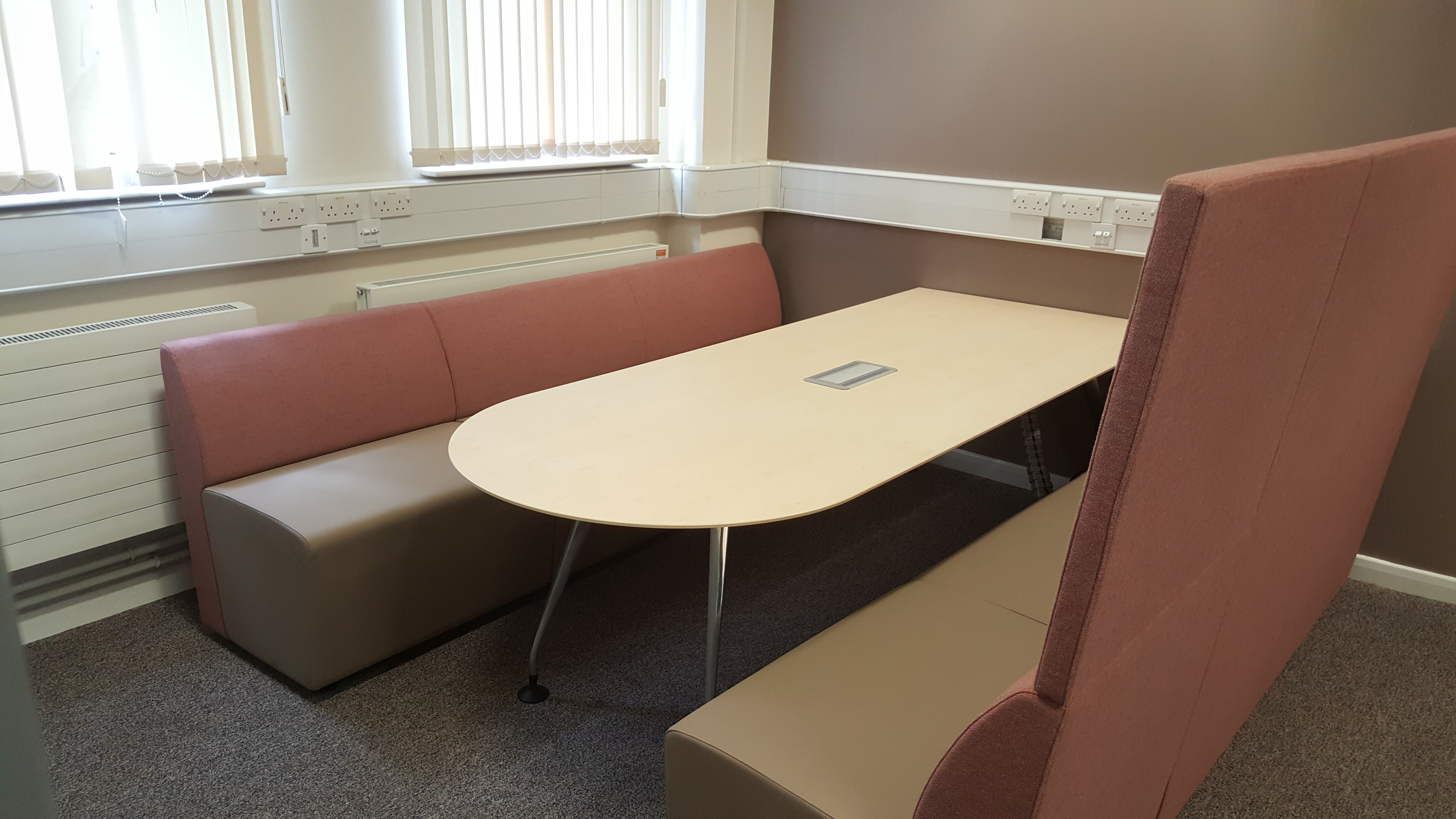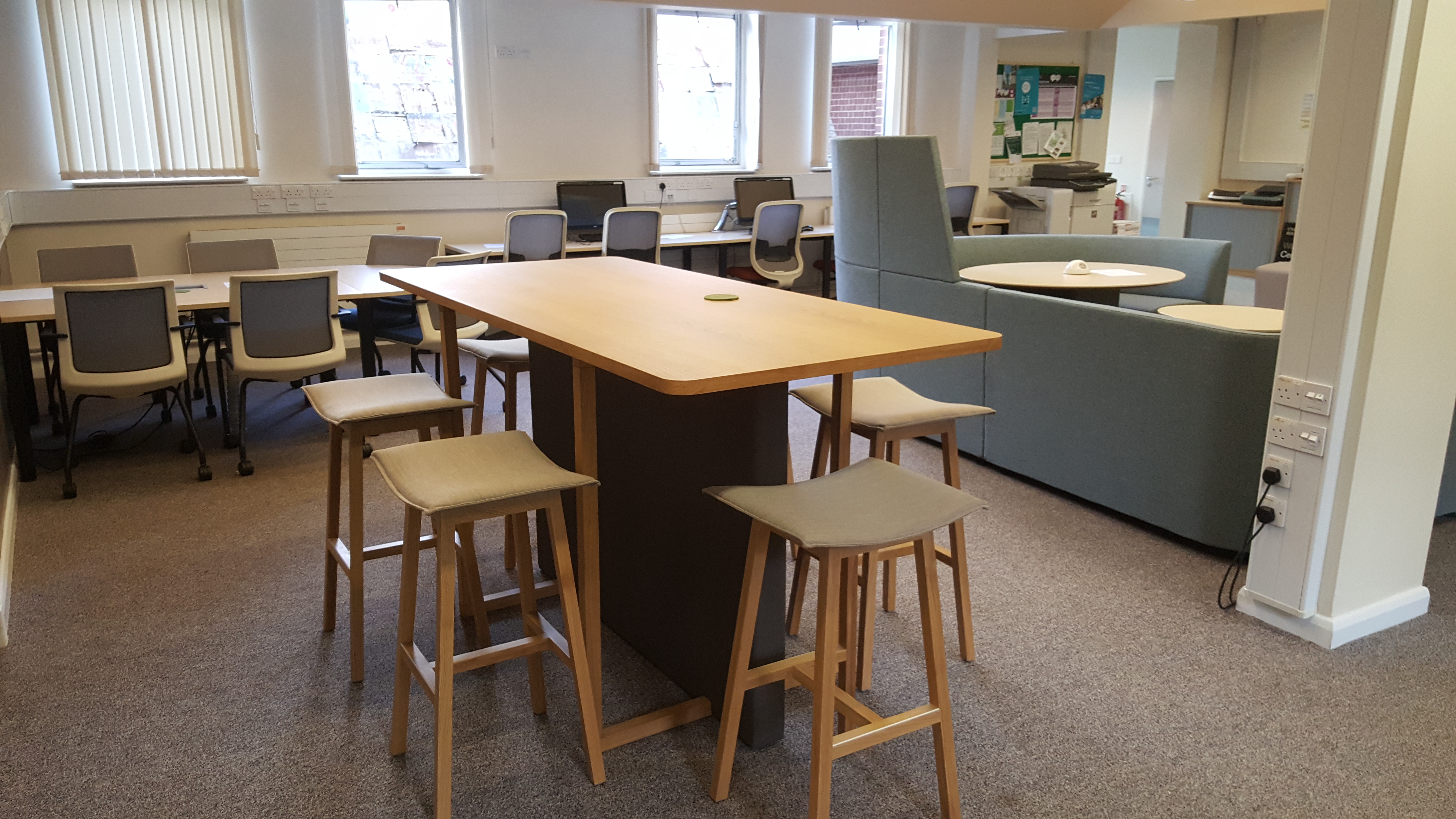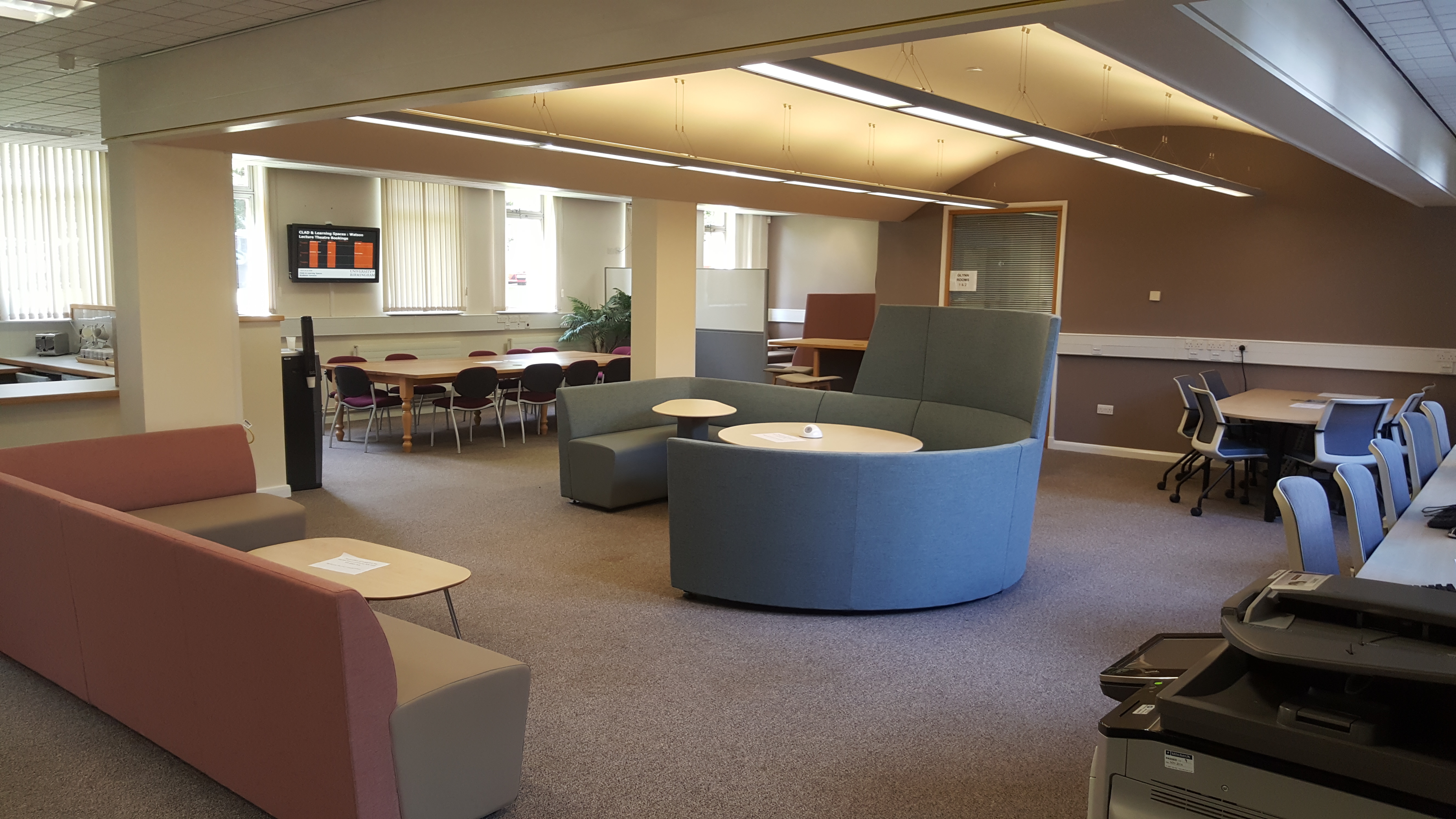 This social study area was well used by students and staff, but had a rather dull corporate feel exacerbated by the uncomfortable furniture. After a lengthy consultation period, our designs were finally realised by my successor Ollie Ireson and furnished by Broadstock.