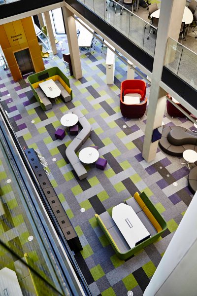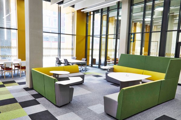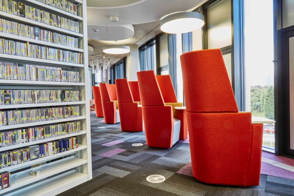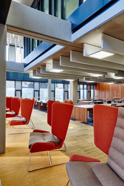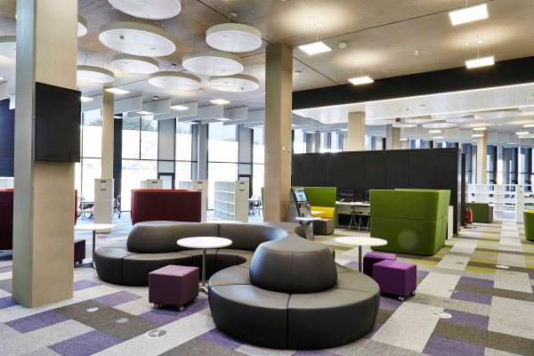 Opened in September 2016, the new library cost over £50 million and provides students with over 1,800 seats, most with power sockets. There are a variety of learning zones including casual seating, thinking spaces and individual work areas.