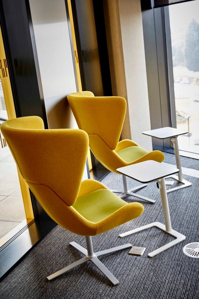 Adjacent to the Library lounge is this accessible study space that is open to all without the need to pass through the gates. A mixture of furniture pieces providing that much needed variety and enough space for different work methods.
