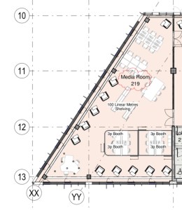 As Learning Spaces Development Manager, I worked closely with the Senior Project Manager, Stephen Ashton and Diane Job, Director of Library Services alongside her team during 2015. We investigated how the study spaces should accommodate how students learn, their aspirations and what we know works. As a design team we collaborated with the furniture supplier Broadstock and Associated Architects to look at specific study areas such as the music library, study skills suite, group work spaces and post graduate rooms. Our work paid great attention to planning the detail for the design, type of furniture and considered layouts for study.
