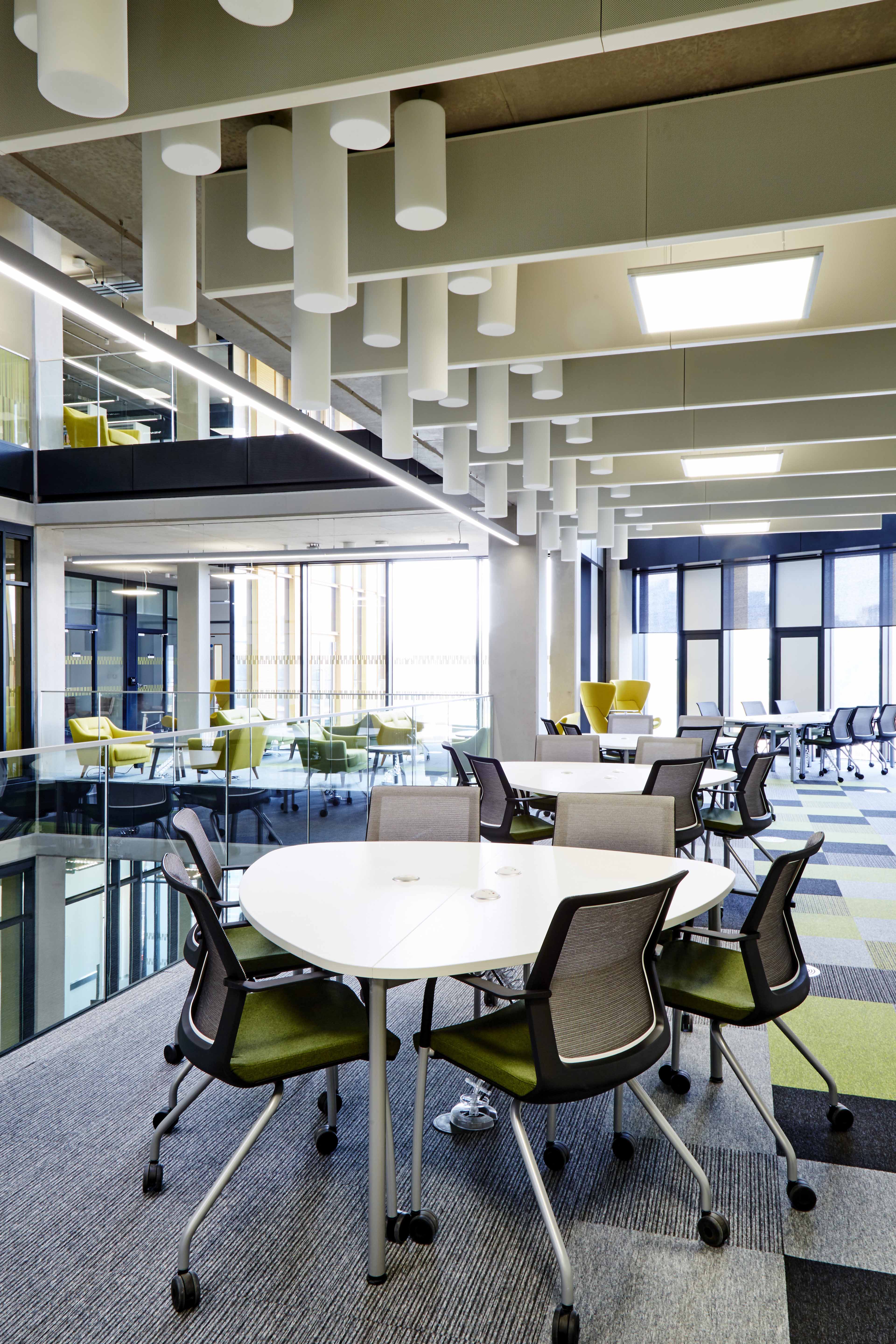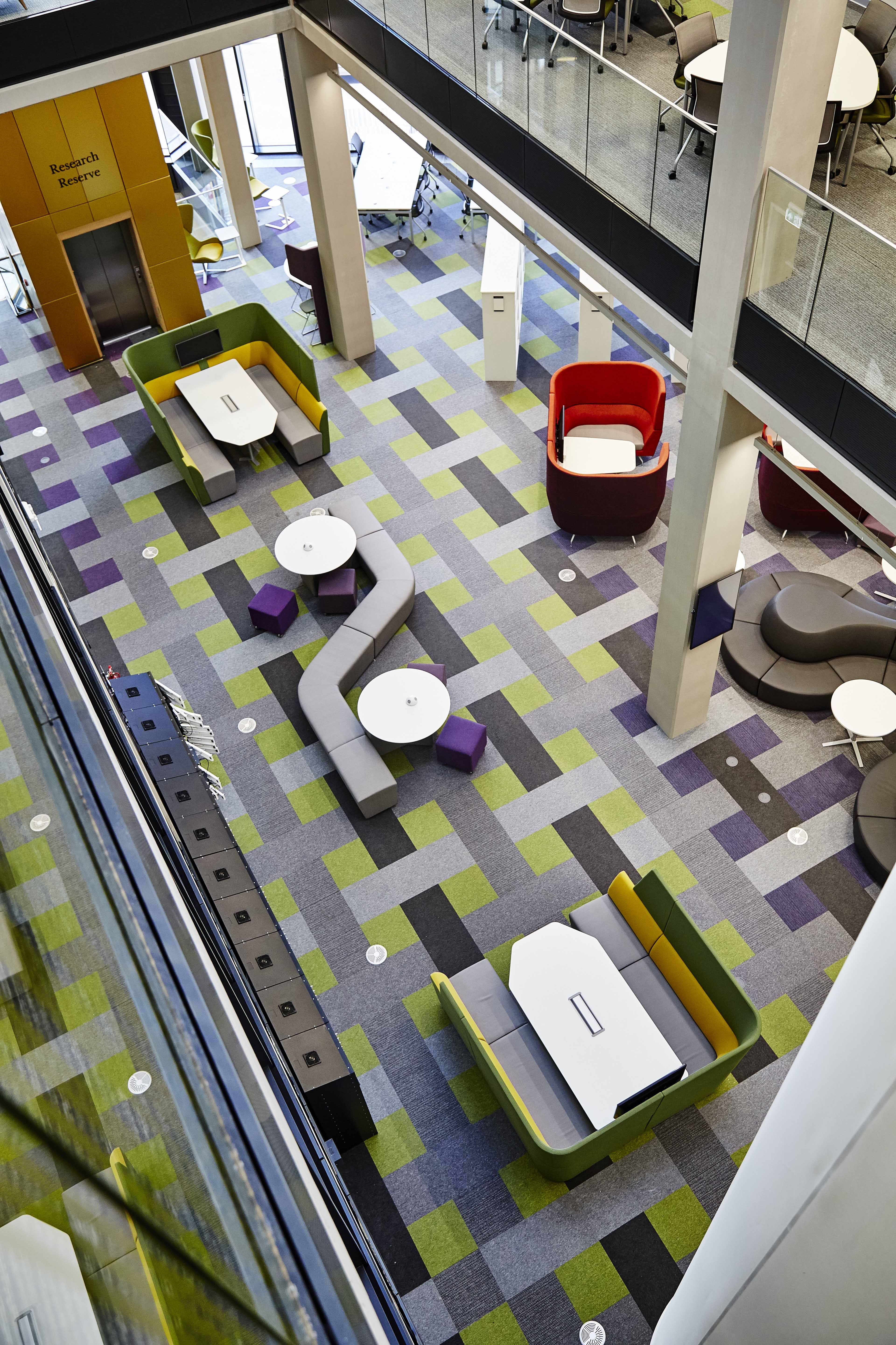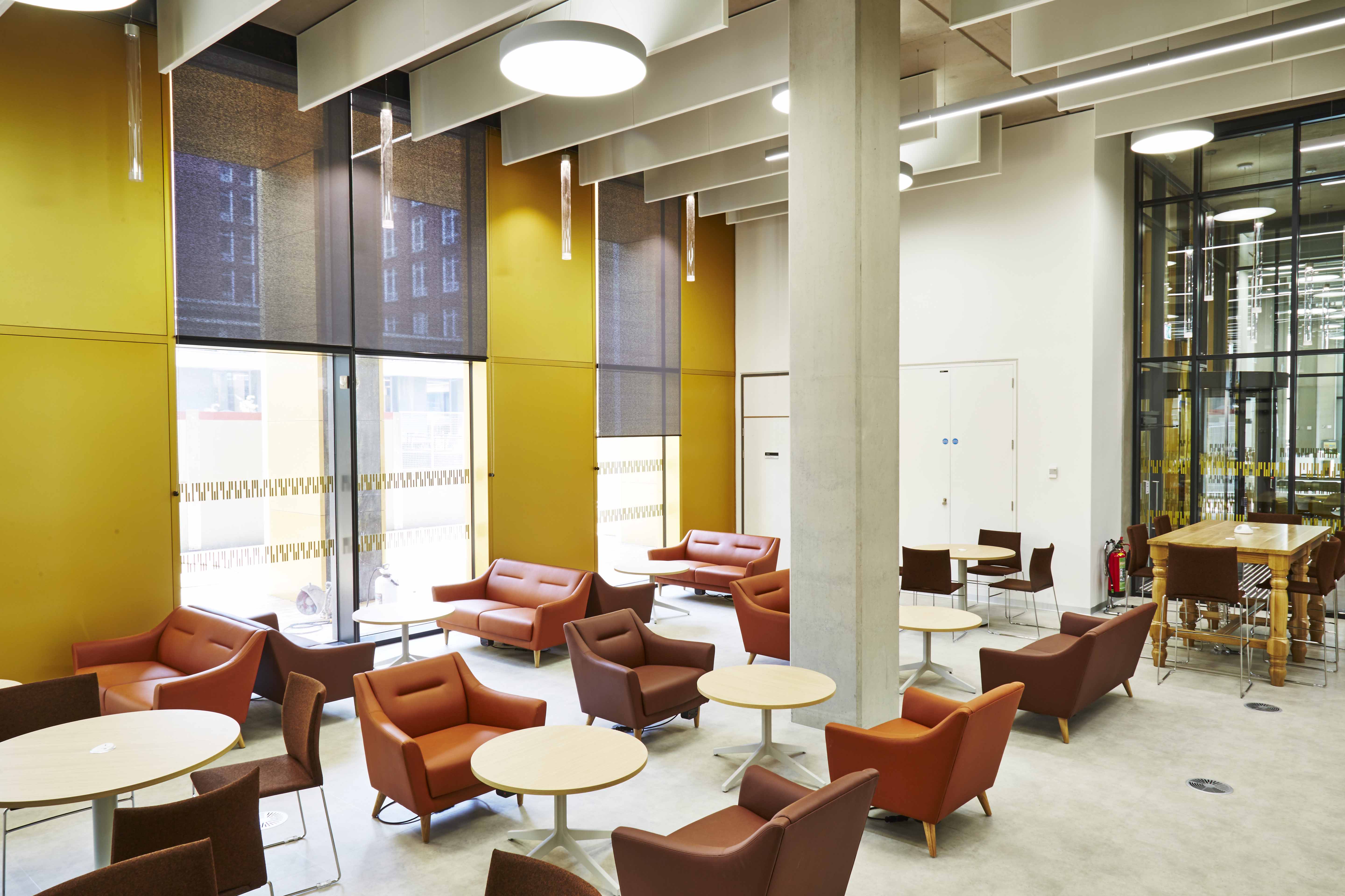 Opened in September 2016, the new library cost over £50 million and provides students with over 1,800 seats, most with power sockets. There are a variety of learning zones including casual seating, thinking spaces and individual work areas.